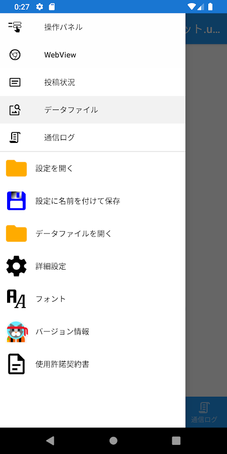 | 2020/4/22 | Ver1.0.0(52) 文字数の少ないファイル名のデータファイルを「data」フォルダに置いた場合、このデータファイルを選択していても投稿時に「データファイルを選択してください」と表示されて投稿できない問題を修正しました。 データファイルを選択した状態でデータファイル編集にて新規作成するとデータファイルの選択は解除されますが、選択していたデータファイルが操作パネルの表示に残ってしまう問題を修正しました。 操作パネルのURL入力ポップアップの初期値がURL欄の値になるようにしました。 WebViewのURL入力ポップアップの初期値が現在のURLになるようにしました。 ボタンやメニューを連打した際に多重でページが開いてしまう問題を修正しました。 |